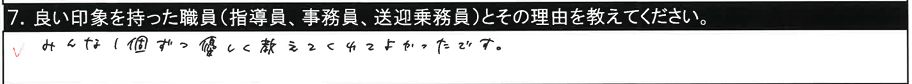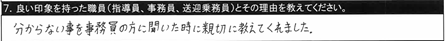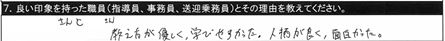 7.良い印象を持った職員/〇〇さん 分かりやすく優しかった |
