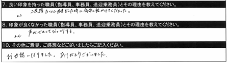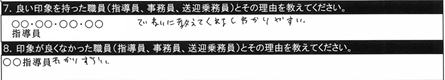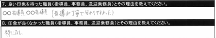 7.良い印象を持った職員/〇〇指導員、○○指導員(指導が丁寧で分かりやすかった) |