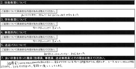 2.技能教習について/○○指導員 すごく丁寧に解説してくださるのですが、聞き取りずらい場面が多々ありました。