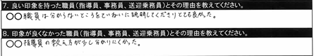 7.良い印象を持った職員/〇〇・〇〇・〇〇・○○指導員 ていねいに教えてくれるしわかりやすい |